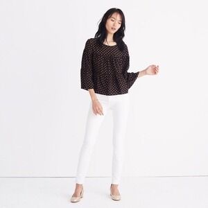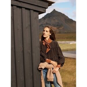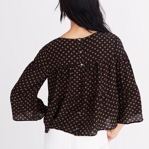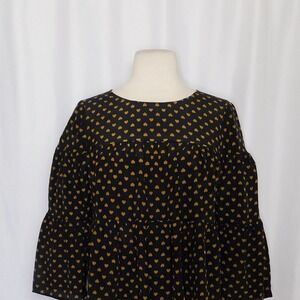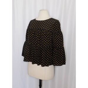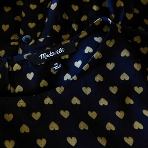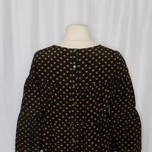 MADEWELL Silk Black Gold Heart Flip Button Back Tiered Top Blouse X-Small