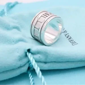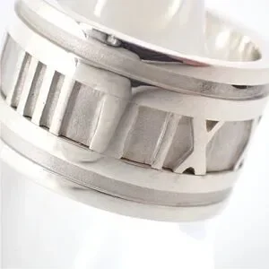 Tiffany & Co. 💯 % Auth 925 Silver Atlas Roman Numeral Wide Ring w/Pouch✨EUC✨