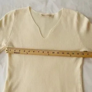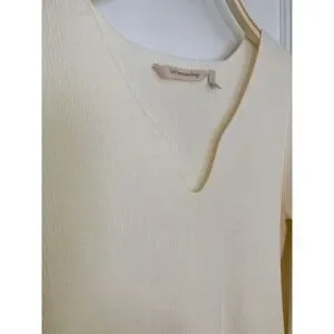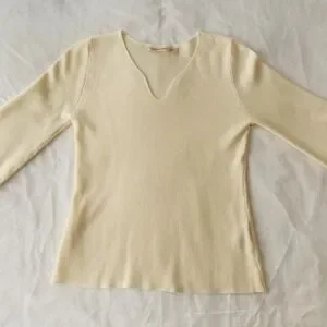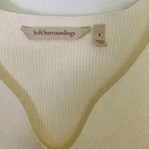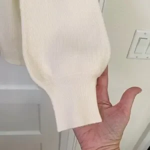 Soft Surroundings, ribbed sweater, balloon sleeve, notch neck, cream sweater, off white, knit top, feminine, cottagecore, minimalist, classic, neutral, viscose blend, size small, winter fashion