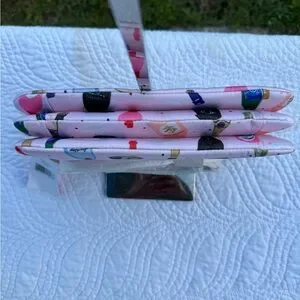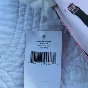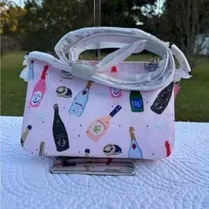 NWT Kate Spade New York Dawn triple gusset crossbody bag with an adjustable strap. Enamel nameplate. Champagne, sparkling wine and caviar motif against a pink nylon background. 3 interior open pockets with a pink lining. An amazingly beautiful novelty bag!