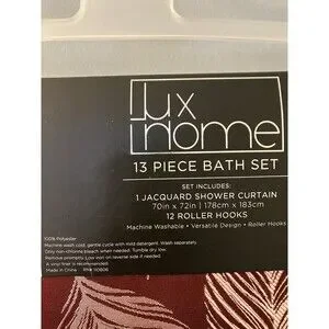 Lux Home Jacquard Shower Curtain With Roller Hooks NWT Leaf Design Fall
