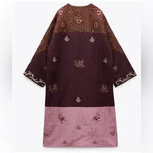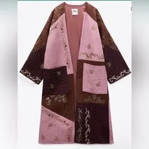 Zara Patchwork Embroidered Kimono Robe - Pink & Brown