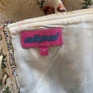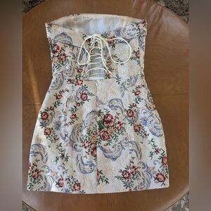 EDIKTED Floral Tapestry Lace-Up Back Strapless Minidress