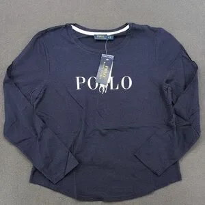 Classic navy long sleeve tee. Features Polo logo on front. Comfortable and stylish.