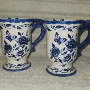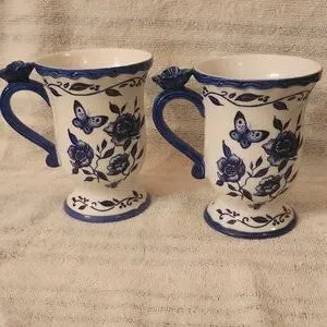 Beautiful set of two Susan Winget designed porcelain footed coffee mugs, discontinued, hard to find pattern.