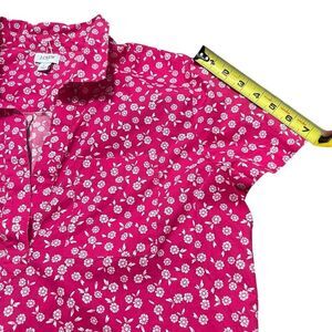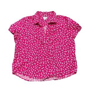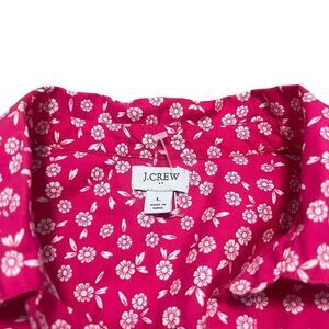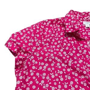 J CREW Printed Pink Fuchsia Ivory Poplin Popover Too Size L