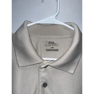 PGA Tour Polo Shirt Mens Large Tan Short Sleeve Golf Performance Good Ribbed