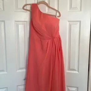 HY ONE SHOULDER CORSET STYLE FORMAL WEDDING GUEST PROM GOWN DRESS CORAL SIZE 12