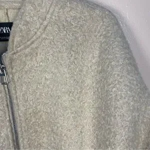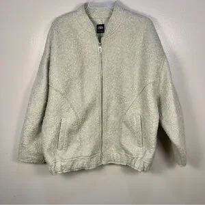 Chic oversized boucle front zipper jacket by Zara in beige. Very good condition…