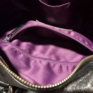 Up for grabs is this authentic Coach Ashley Satchel in a timeless black pebbled leather. This is a "workhorse" bag—spacious enough for your essentials but sleek enough for a night out. The standout feature? That gorgeous, signature vibrant purple satin lining that makes finding your keys a breeze!