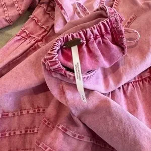 Chic pink boho dress featuring puff sleeves and a V-neckline. Perfect for casual outings.