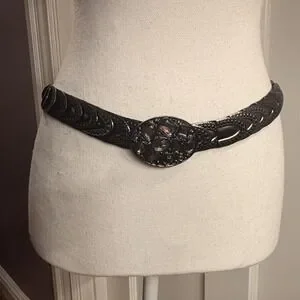 Womens Hammered Metal Stretch Belt Rhinestone Buckle Size M/L