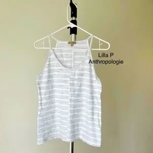 - Anthro/ Lilla P/ White & Grey Stripe Tank Top/ Sz M