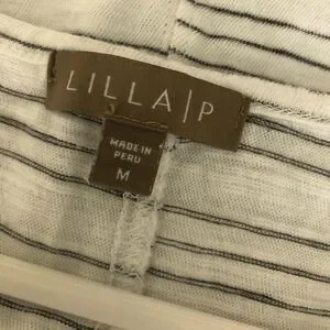 ANTHROPOLOGIE Lilla P White & Grey Stripe Tank Top/ Sz M