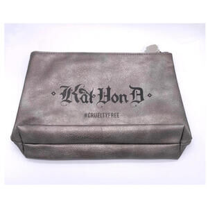 KVD Kat Von D New Vegan Large Pewter/Gray Makeup Bag Pouch Case Charm 12"x8"x1"