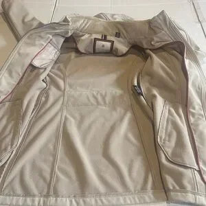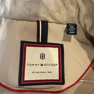 Tommy Hilfiger belted soft shell Beige Jacket with Striped Belt zipper front