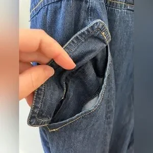 Chic denim overalls by eShakti. Perfect for casual wear. Features a classic design.