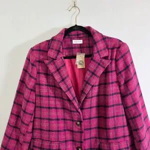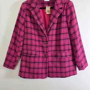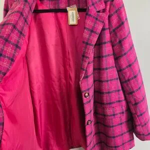 NWT Vestique As If Plaid Fuschia Pink Fall Winter Blazer Coat Jacket Size Large