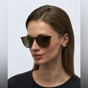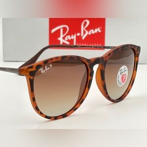 Authentic Polarized lens Ray-Ban Erika model. These are a metal/Plastic combo and very popular! We ship within hours of your order. Comes with a Ray-Ban hard case, cleaning cloth and other new purchase docs and a grey gift box.