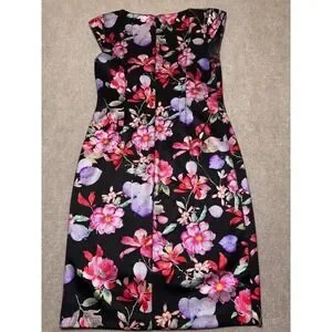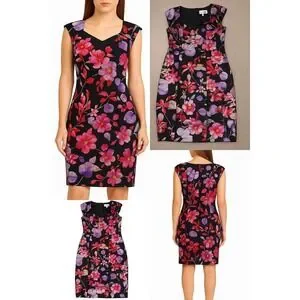 Joseph Ribkoff Floral Metallic Sheath Dress Size 10 Black Pink Purple