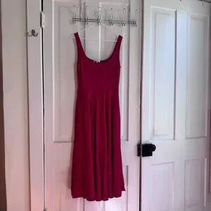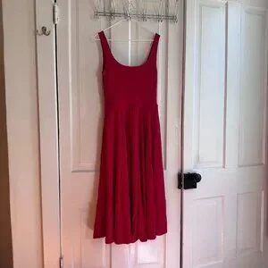 Description in Reformation website: Look cute, be comfortable. This is a midi length, fit and flare dress with a scoop neckline. The Rou is fitted in the bodice with an easy fitting skirt. SOLD OUT at Reformation website in the Sundried Tomato color, size medium at the time of this listing.