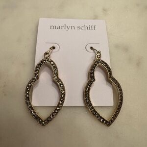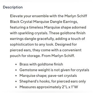 NWT Marlyn Schiff Black Crystal Marquise Dangle Earrings