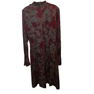 Ivanka Trump Red & Black Velvet Floral Long Sleeve Midi Dress Size 4