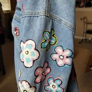 size small. Unworn. Barbie jean jacket by Leigh. Hand painted and decorated. One of a kind.