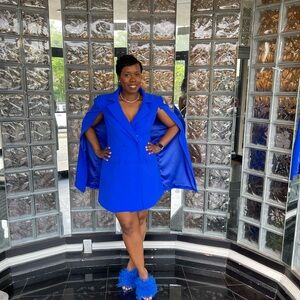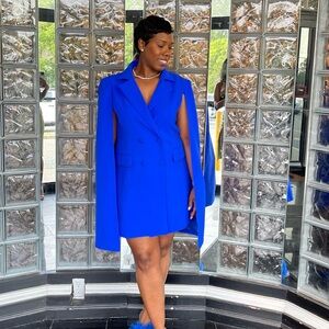 Elegant Akira Blue Blazer Cape Dress