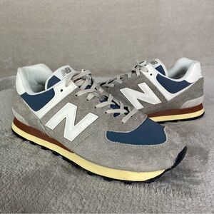 New Balance 574 Shoes Mens Size 11.5 Gray Blue Suede Low Top Sneakers NEW