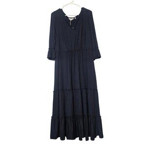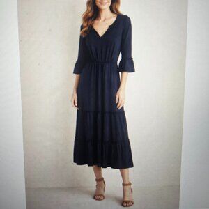 BODEN Dress Maxi/Midi Dress Tiered Women's Size US 12 / UK 16, in Navy Blue, 3/4 Sleeve, Pullover, Elastic waist.