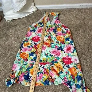 Peach Love dress floral print halter neck short open V back & front SZ MD summer