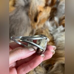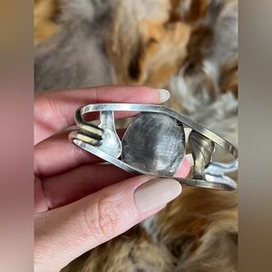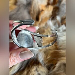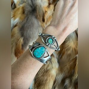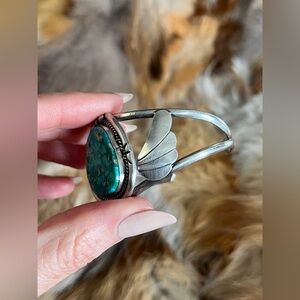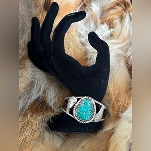 Stunning silver and turquoise cuff bracelet from my Grandmother's collection. She was an avid traveler of the Southwest so I have no idea what tribal nation in America this is from, but it is handmade and absolutely stunning. Very detailed, and can be adjusted slightly for size.