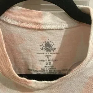 Stylish Disney long sleeve tee. Features subtle pink patterns on white. Perfect for fans.