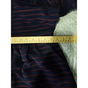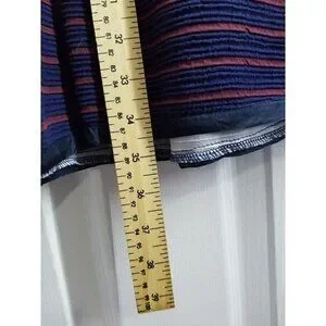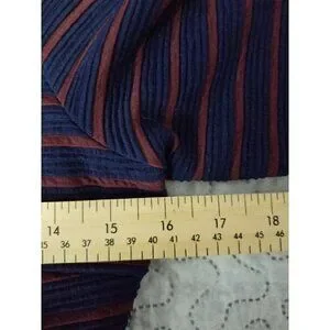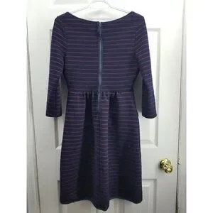 Maeve by Anthropologie presents this navy and burgundy striped fit and flare dress in size 2. Made with stretchy fabric, it is comfortable and flattering to wear. The dress features pockets, making it practical and stylish at the time.