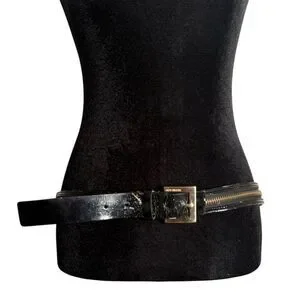 Michael Kors Black Leather Belt Women Size L Gold Zipper Detail Adjustable FLAW