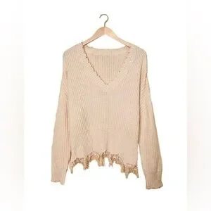 Women’s Waffle Knit Tassel Hem Pull Over Sweater