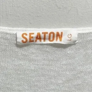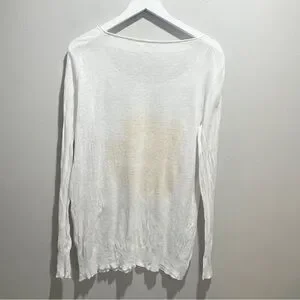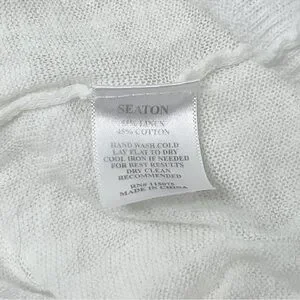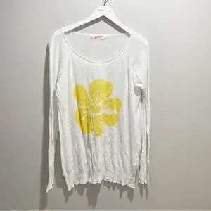 SEATON REVOLVE Women’s Intarsia Knit Yellow Ivory Flower Sweater Linen Blend Large. Good pre-owned condition. FLAW. Faint stain on right cuff. See photos. All measurements are approximate.