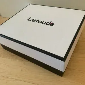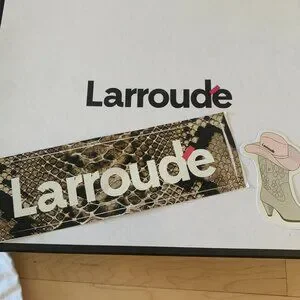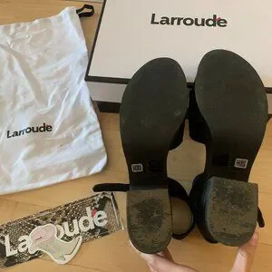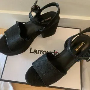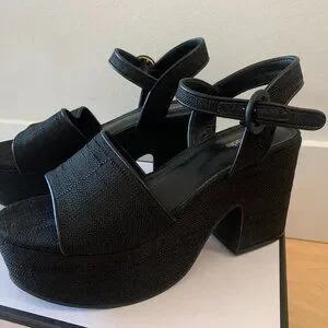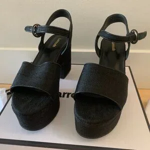 HARD TO FIND! LIKE NEW Size 8 MISO PLATFORM STRAP SANDAL in BLACK RAFFIA. Like New in Box with Duster bags & complimentary Larroude Stickers.