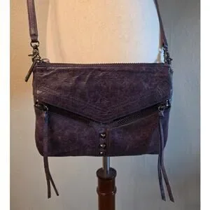 Botkier Purple Leather Crossbody Bag Zippers Studs Boho