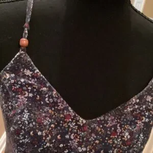 A feminine slip dress in deep purple with a subtle floral print. Lightweight, flattering silhouette with thin adjustable straps. Perfect for casual days or layered for evening wear. Features a flowing skirt and soft, comfortable fabric.