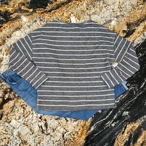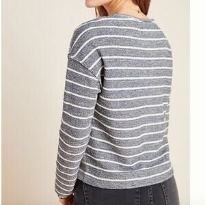 NWT Anthropologie Blue & Ivory Textured Stripe Raw Trim Sweatshirt