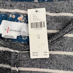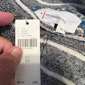 NEW WITH TAGS - RETAIL $68 - This Anthropologie Navy Textured Sweatshirt has Sporty stripes and a textured finish offer this sweatshirt an elevated touch. Color is navy and white (slightly off) stripe Cotton, polyester, viscose Raw trim Pullover styling Machine wash Imported