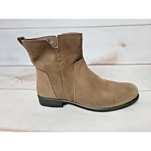 Ecco Womens US Size 7 Touch 15B Brown Suede Leather Slip On Ankle Boots Booties