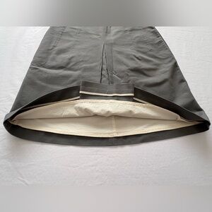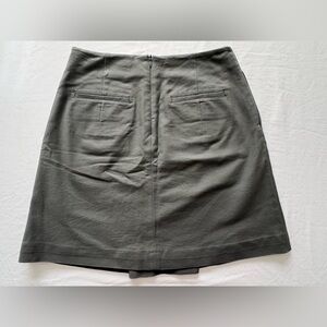 Stylish high-waist A-line skort in olive green. Front center pleat adds structure. Clean, minimalist design. Versatile for work or casual wear.