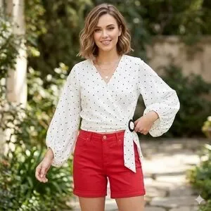 BundleVintage America Red DenimShorts &The Line of Style Polka Dot Wrap Blouse