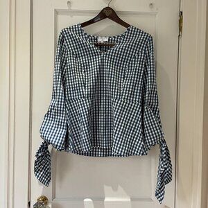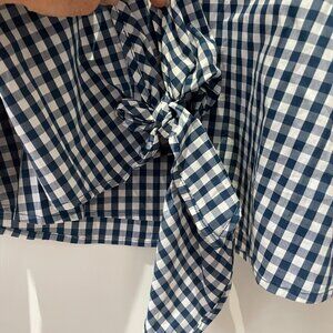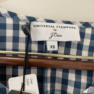 J. Crew Universal Standard Gingham Top Navy/White Tie Sleeve Size XS NWT