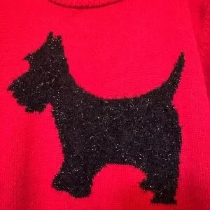 The red color and Scottie dog design also make this a fun holiday or winter seasonal top.