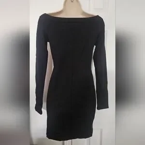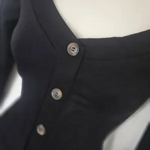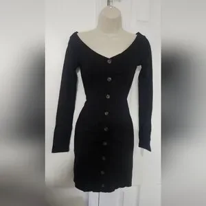 Chic black dress with long sleeves. Features button-down front. Perfect for versatile styling.