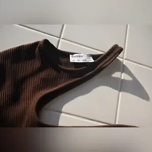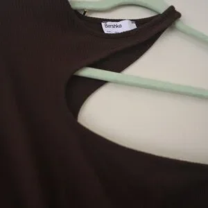 Bershka Dark Brown Asymmetrical Long Sleeve Crop Top Size Large Modern Y2K